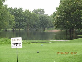 Over 50,000,000 gallons of water were pumped off the Championship course over the last four days. This last weekend's grand total of 8.01-inches of rain left the course with a great deal of clean-up to do before opening. The primary function of the course is flood relief for the community followed by recreation. The water-shed is twice the size of this 110 acre course. Thus after a five week drought and 3.5-inches of rain in the first hour and over 5-inches in the first three hours, most all "ran-off" straight to the course. Staff acknowledges that this was the worst flood in any ones memory. This includes Don Voss who has faithfully served the golf course and park district since 1977.